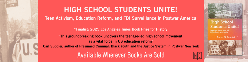 “This groundbreaking book uncovers the teenage-led high school movement as a vital force in U.S. education reform. Drawing on rich archival sources, it highlights how students’ activism around civil rights, desegregation, antiwar protests, and community struggles reshaped schools—and how their efforts reverberated through broader histories of youth, race, and surveillance.”